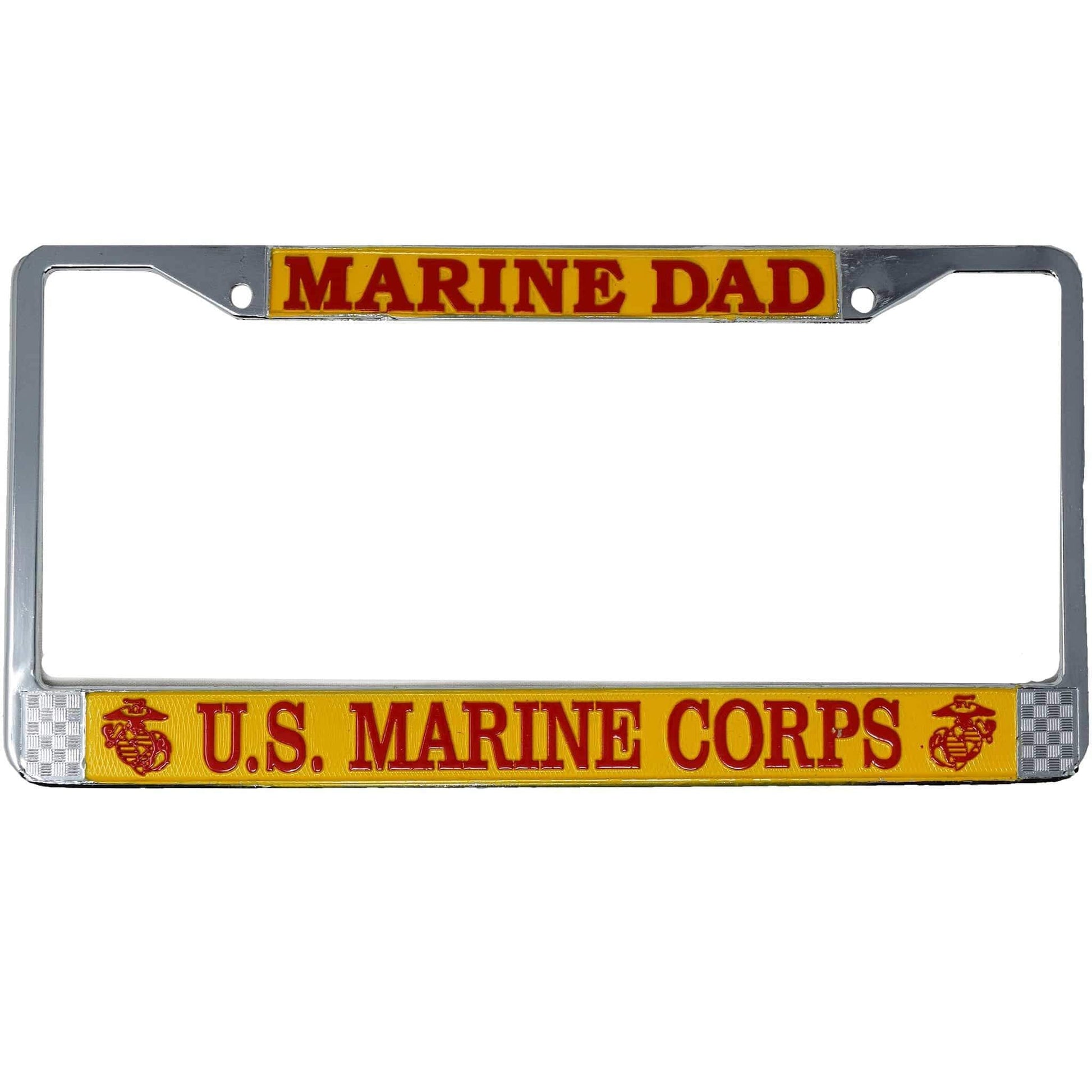 Show off your Marine Corps pride with this license plate frame! Frame features "Marine Dad" in red lettering at the top of the frame, with "U.S. Marine Corps" in red lettering at the bottom of the frame.
