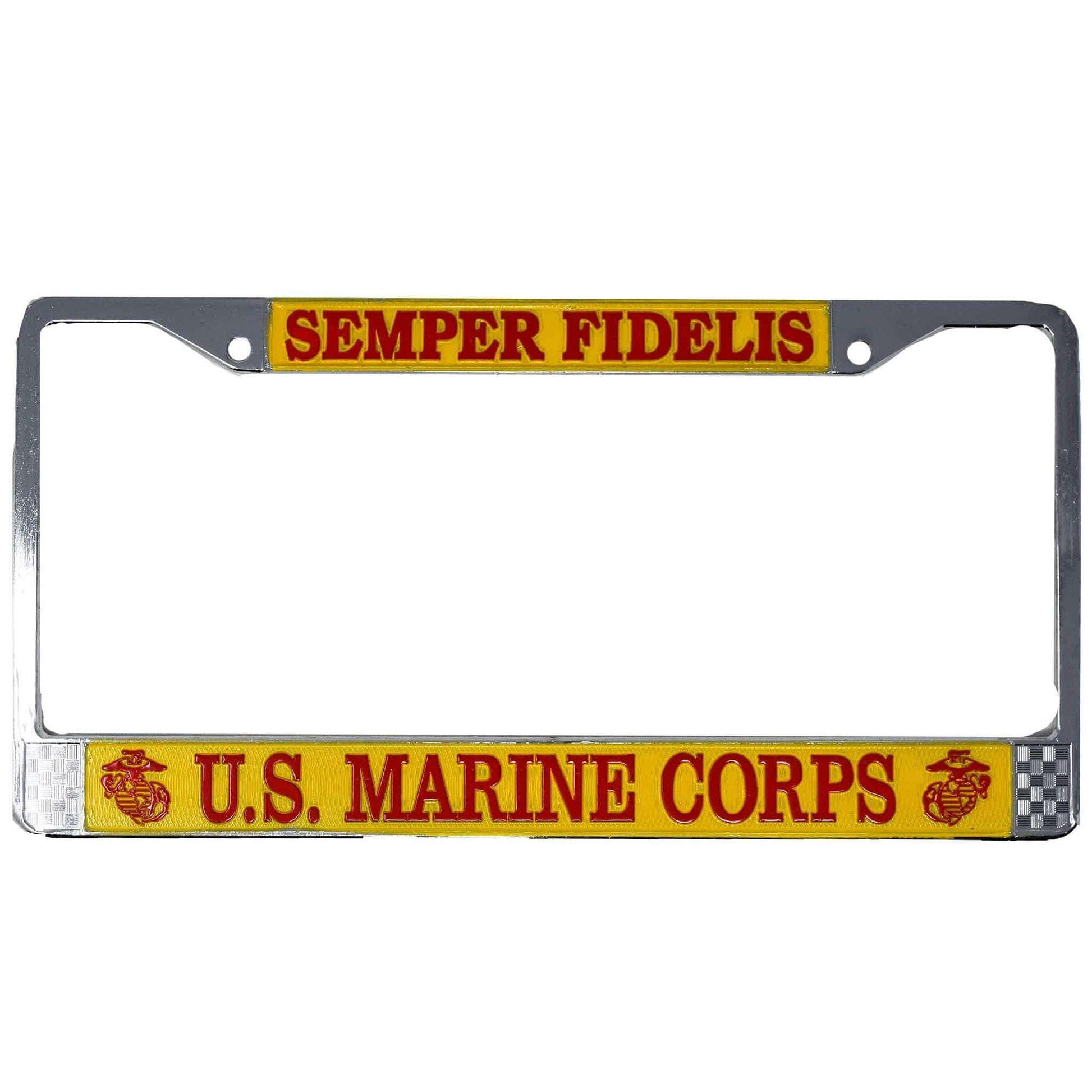 This Semper Fidelis license plate frame fits all standard size US license plates. Order this red and gold Semper Fidelis license plate frame for your vehicle here!