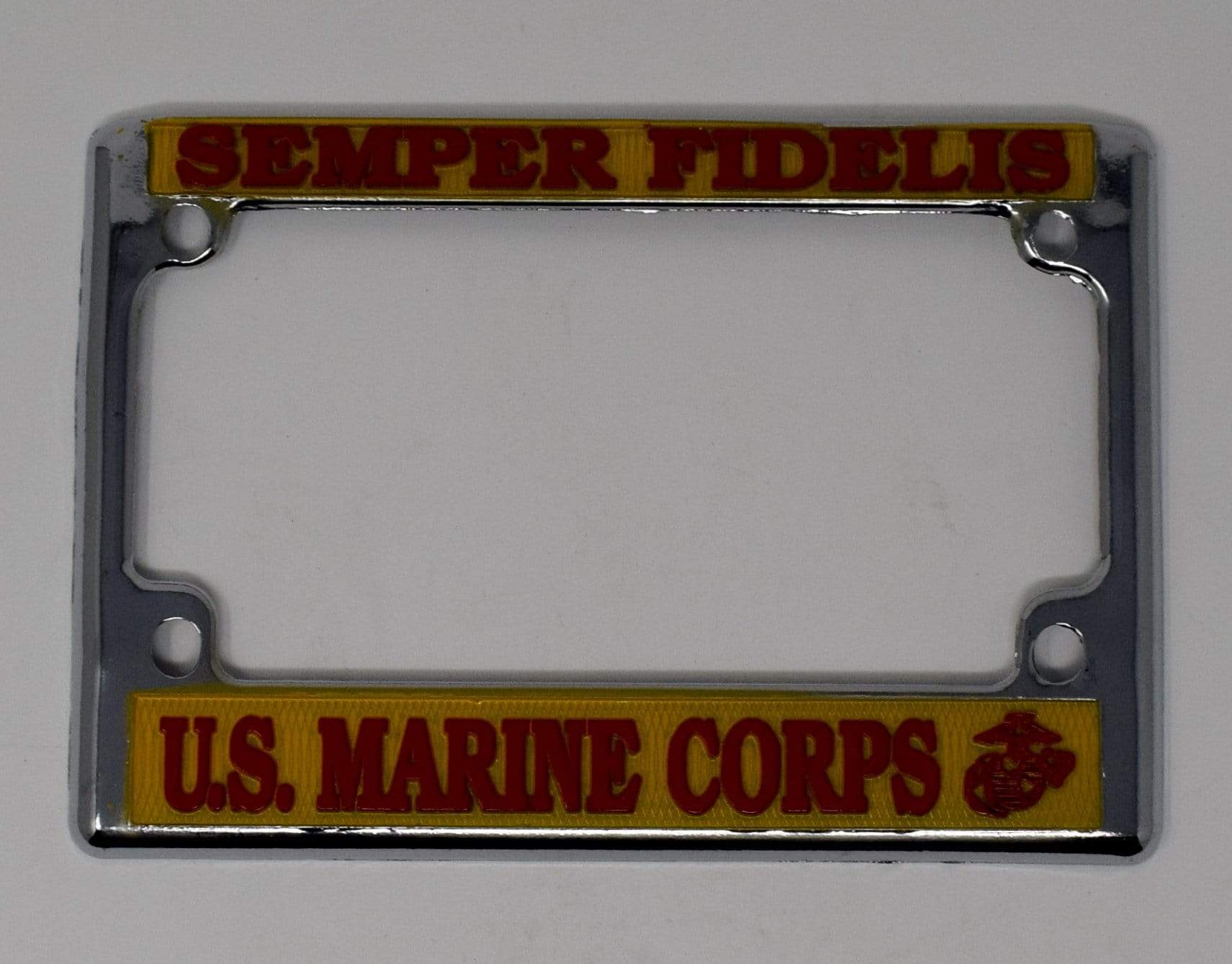 Motorcycle License Plate Frame - Semper Fi. Approx. Dimensions. 7"W x 5"H.